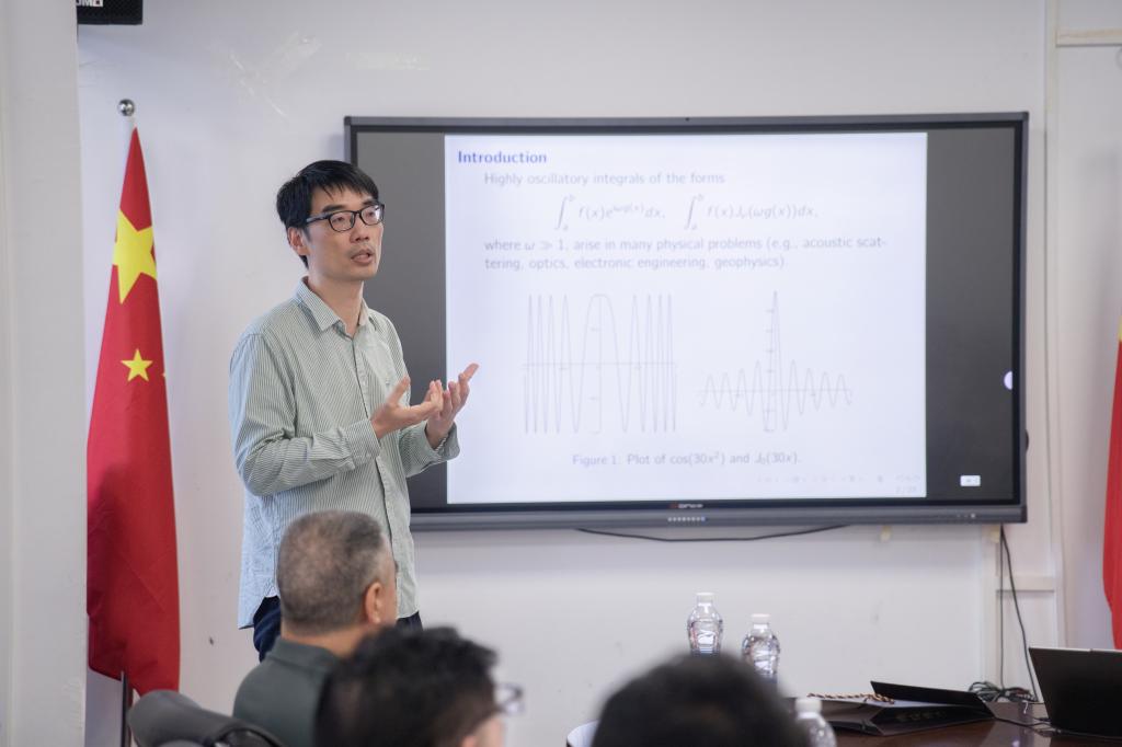 王海永教授聚焦高振荡积分与Hankel变换的数值计算,按“问题背景—思路框架—关键难点—应用示例—后续展望”的脉络展开。首先梳理该类问题在工程与科学计算中的共性痛点与评价指标;随后介绍面向高频场景的求积思路,以复平面视角重写问题,结合正交多项式与广义Gauss–Radau规则构造稳定的复域求积,在节点分布与参数选择上给出可操作的指引,兼顾精度、稳定性与效率。报告通过典型算例展示方法在不同参数下的表现,并指出潜在应用方向,如信号处理、波动问题与分数阶算子数值化等。
