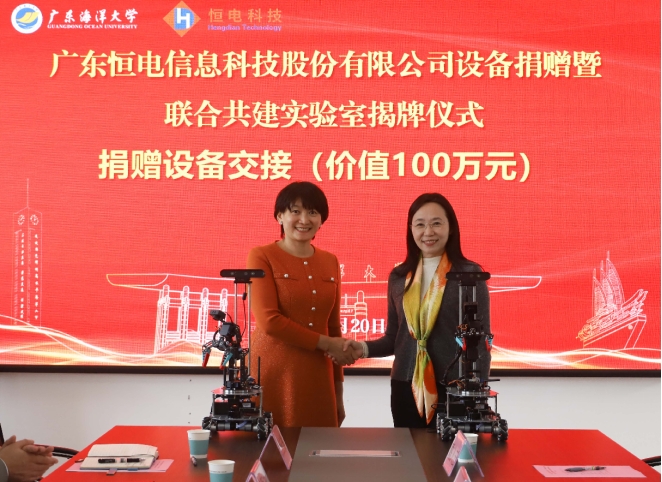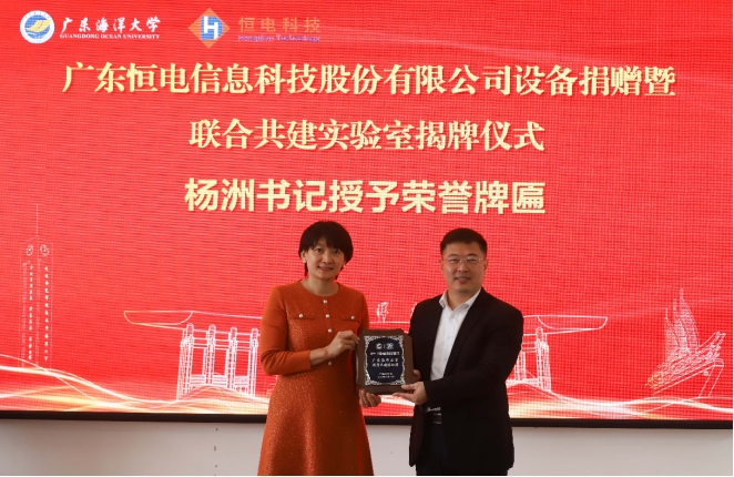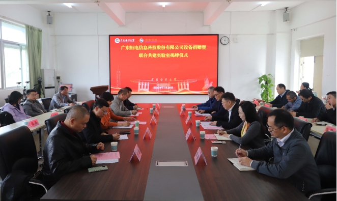 在明德楼A座405会议室举行广东恒电信息科技股份有限公司设备捐赠暨联合共建实验室揭牌仪式。本次活动为美女av90周年校庆系列活动之一,美女av